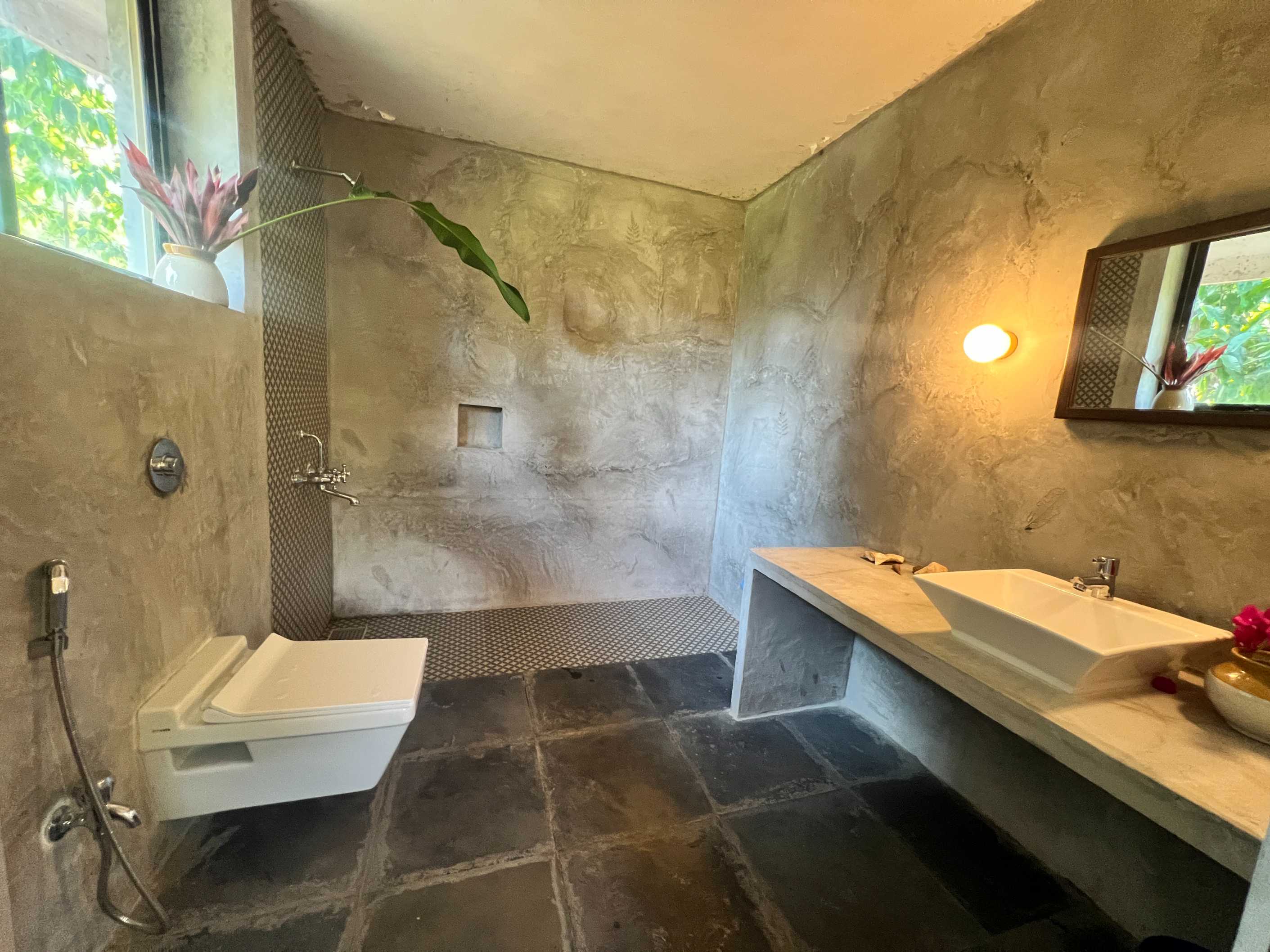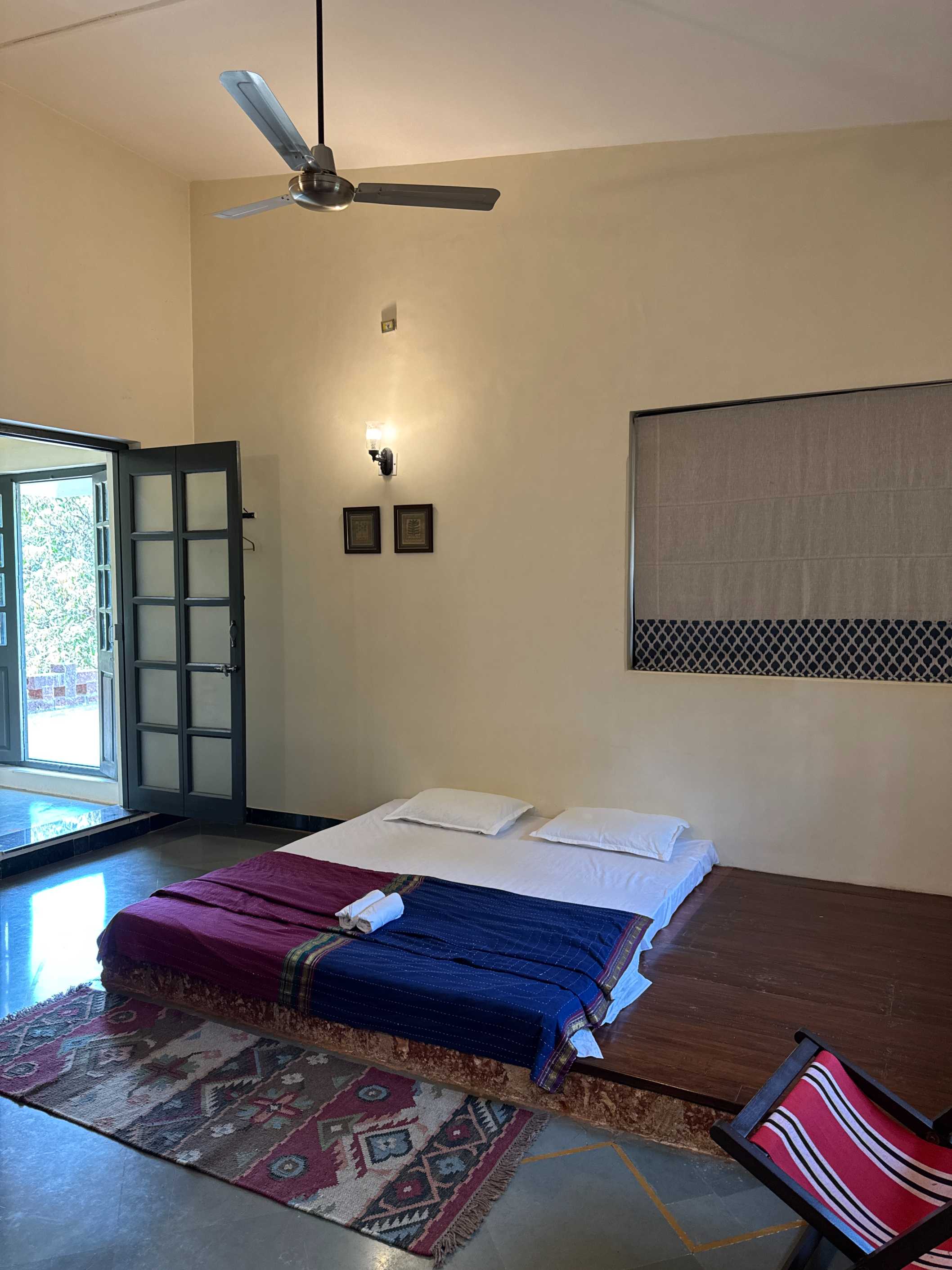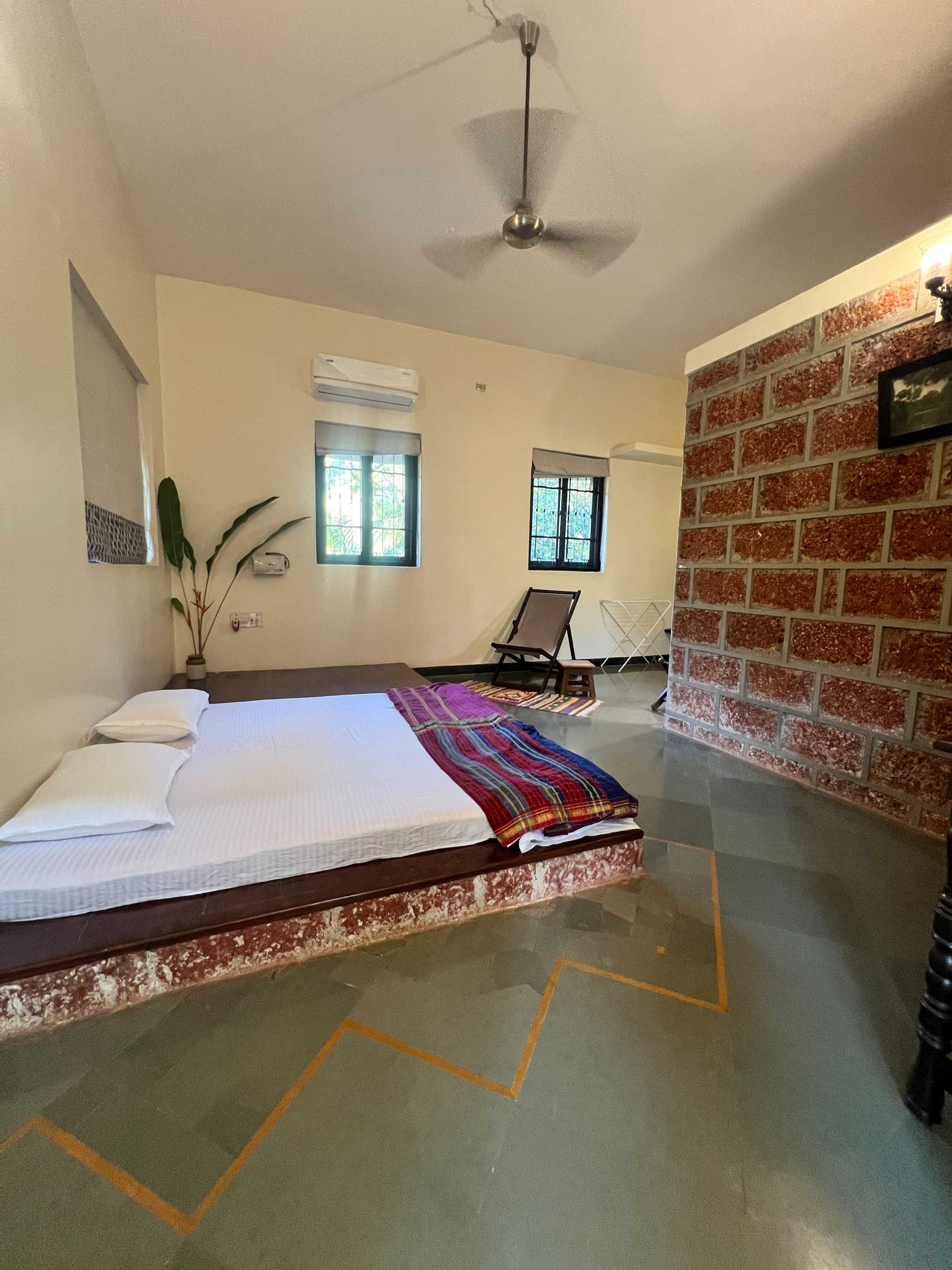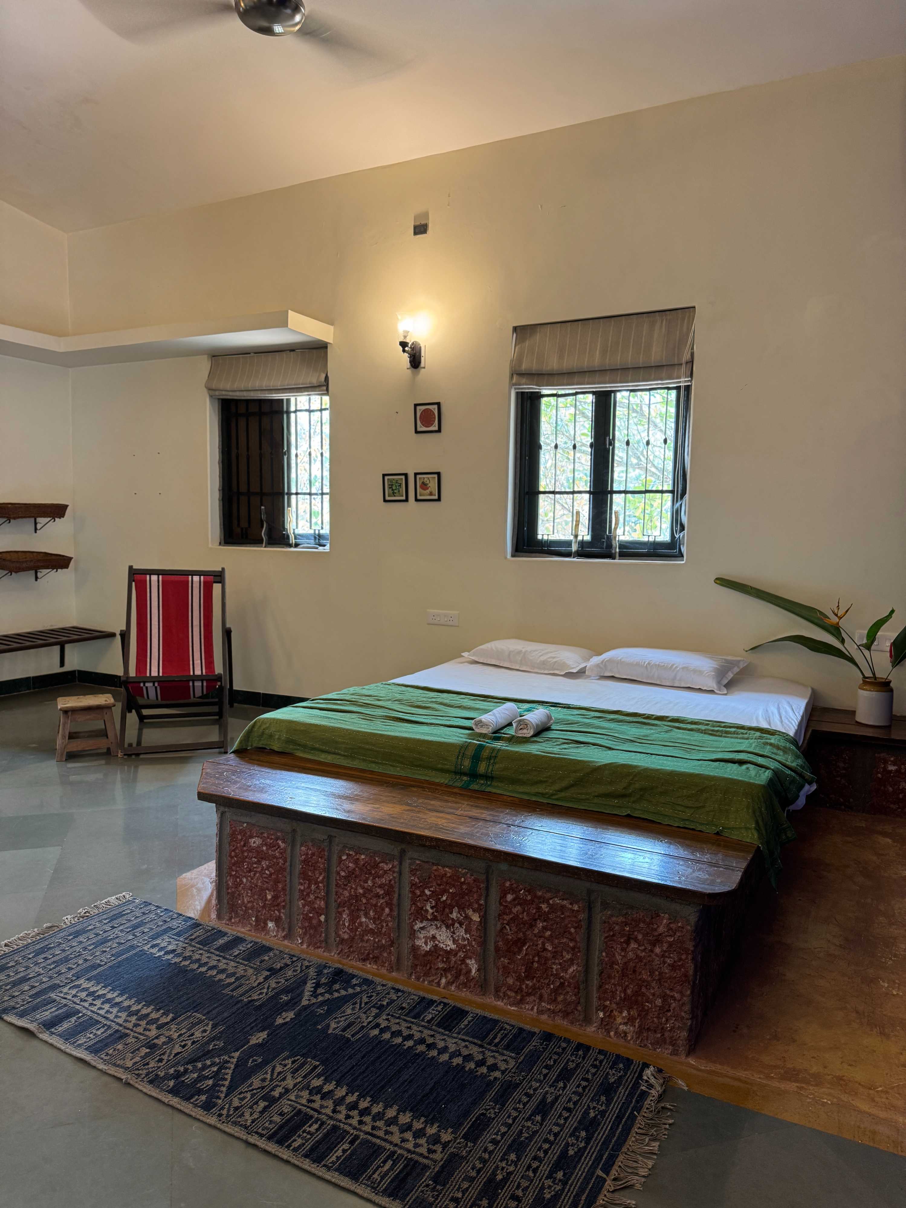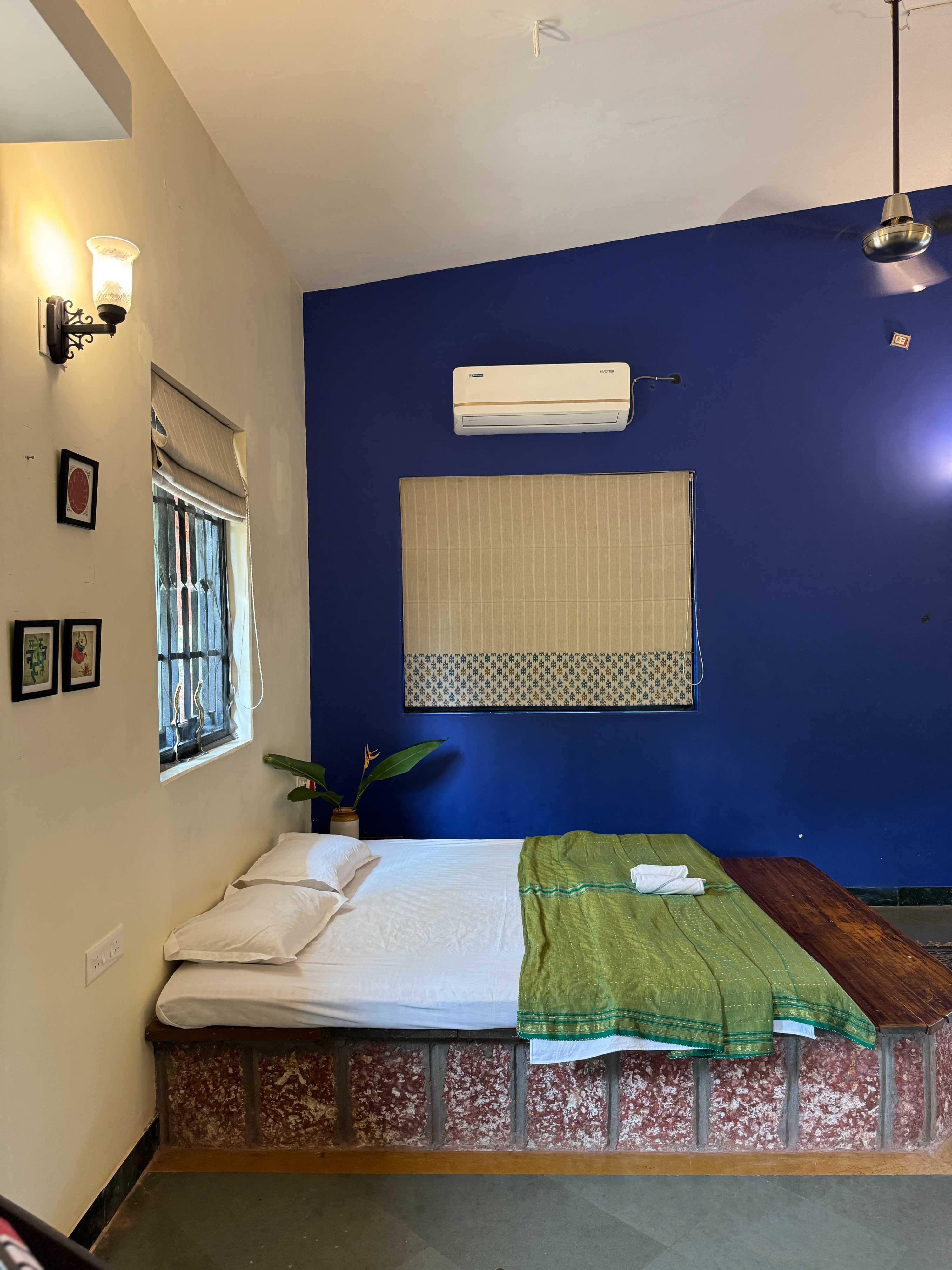 A double room in Main house with low bed, on the first floor , Attached western full Bathroom with common entrance.